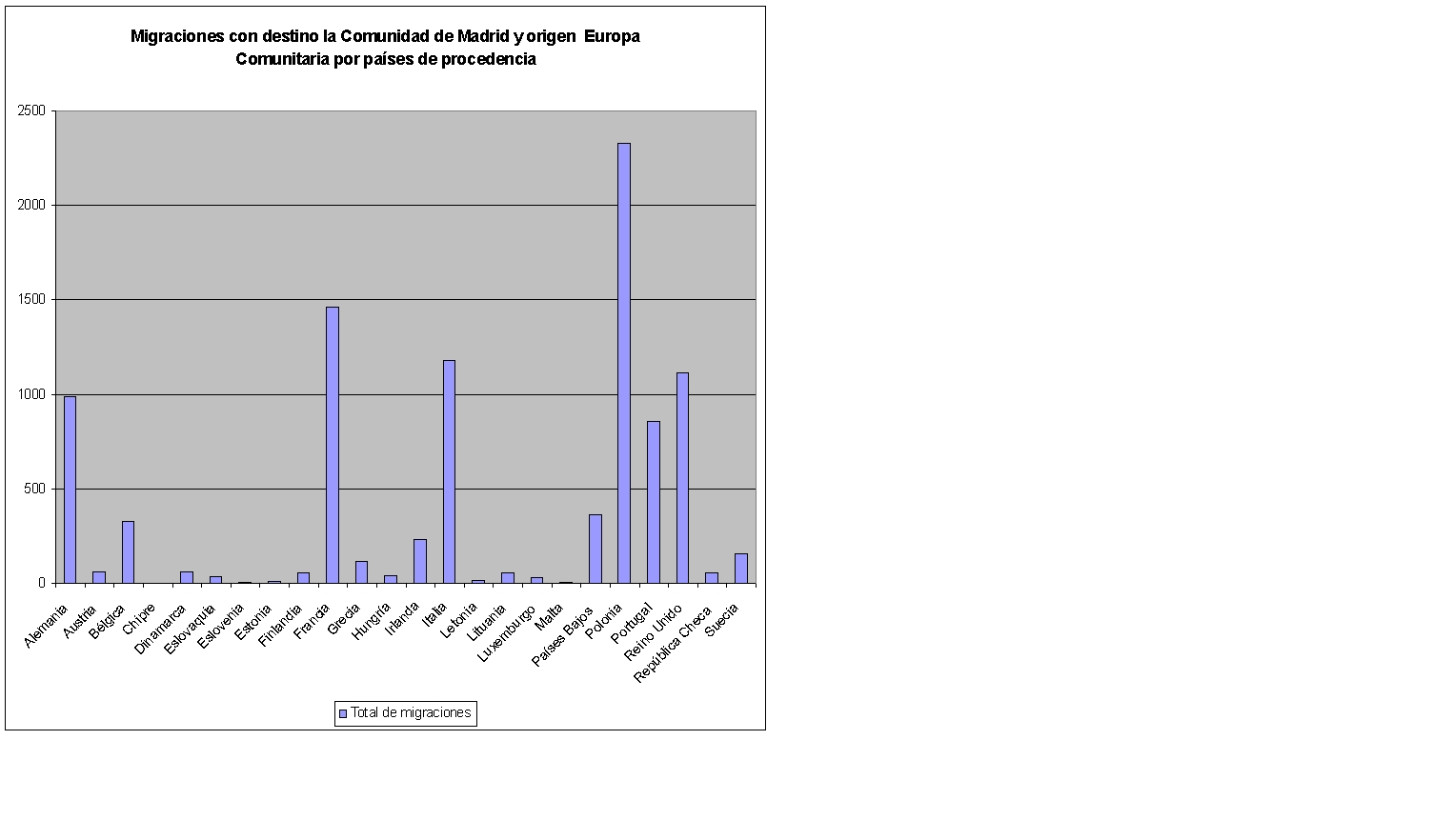 Migraciones con destino la Comunidad de Madrid y origen Europa Comunitaria por países de procedencia. 2004