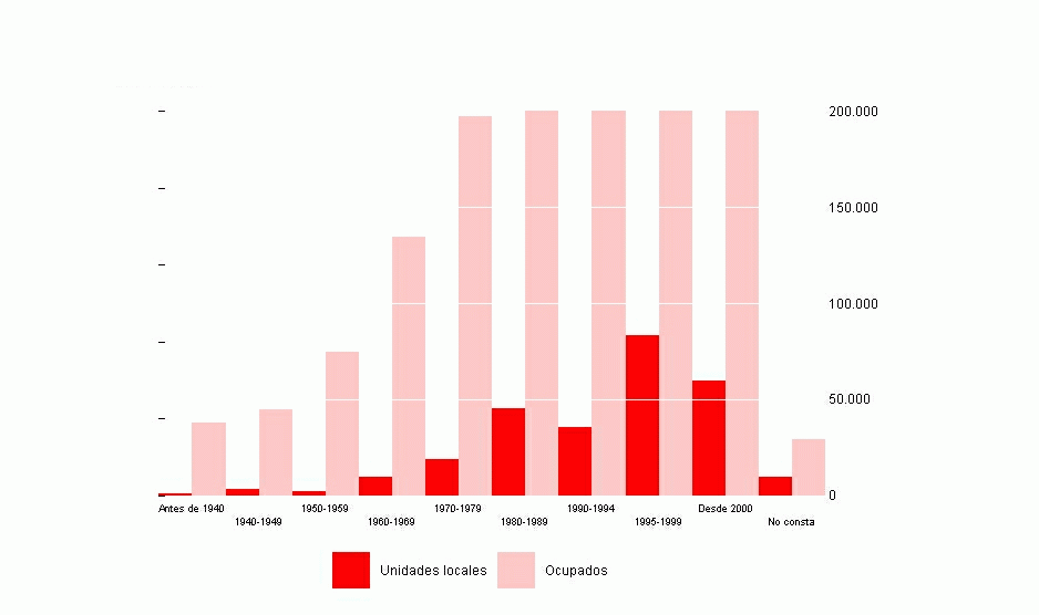 Unidades locales y ocupados clasificados por año de inicio de la actividad.