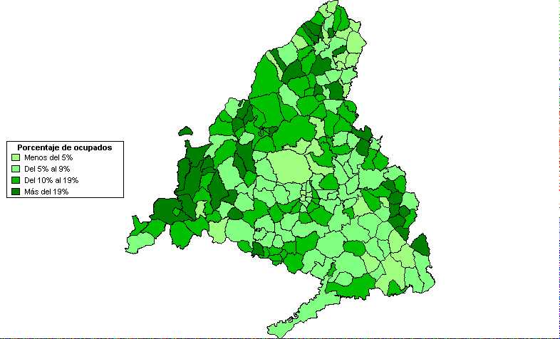 Distribución geográfica del porcentaje de ocupados en construcción en 2001