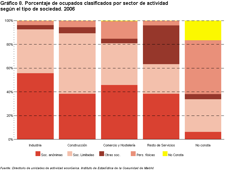 Porcentaje de ocupados por sector de actividad según el tipo de sociedad