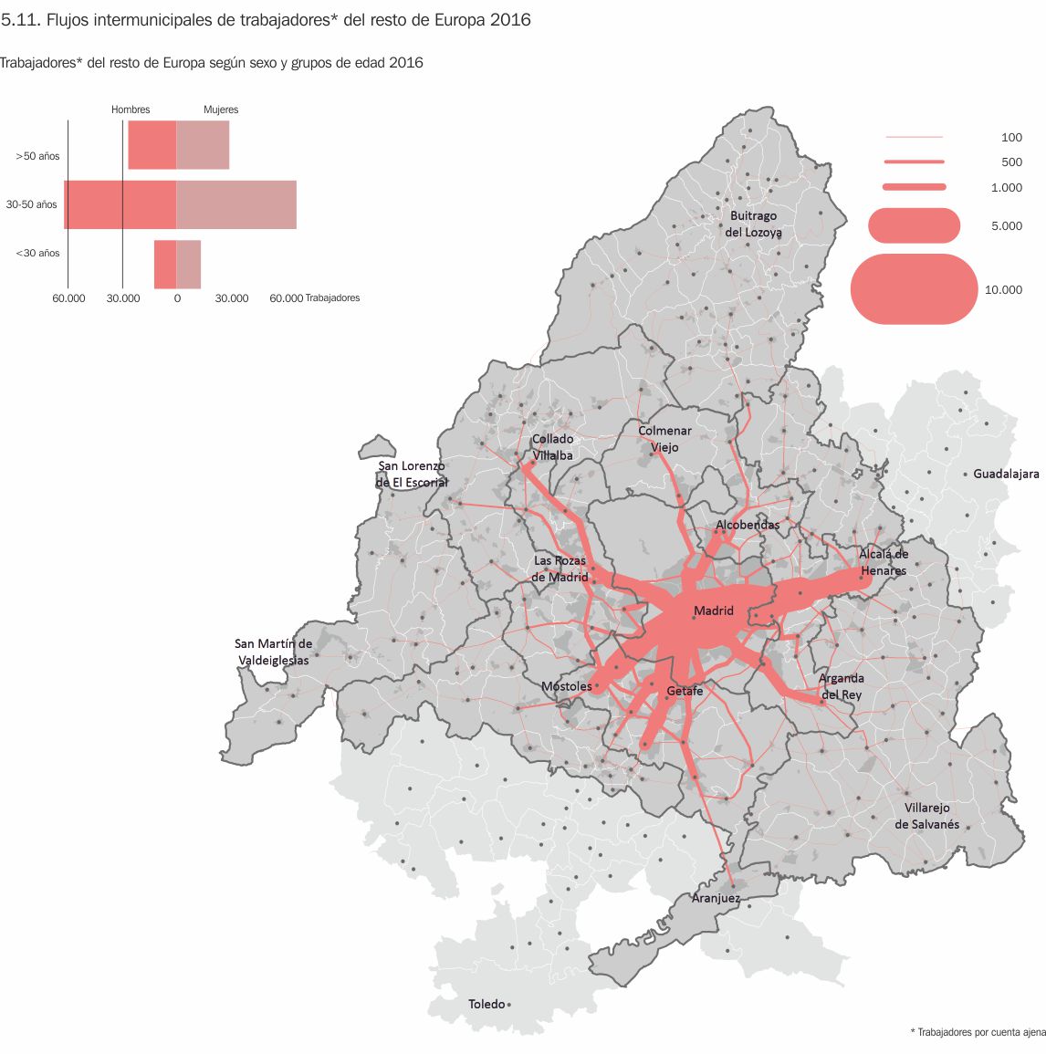 5.5. Flujos intermunicipales de trabajadores entre 30 y 50 años 2016
