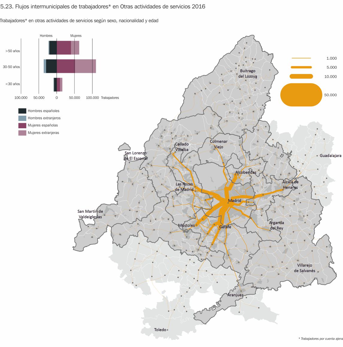 5.9. Flujos intermunicipales de trabajadores españoles y extranjeros 2016