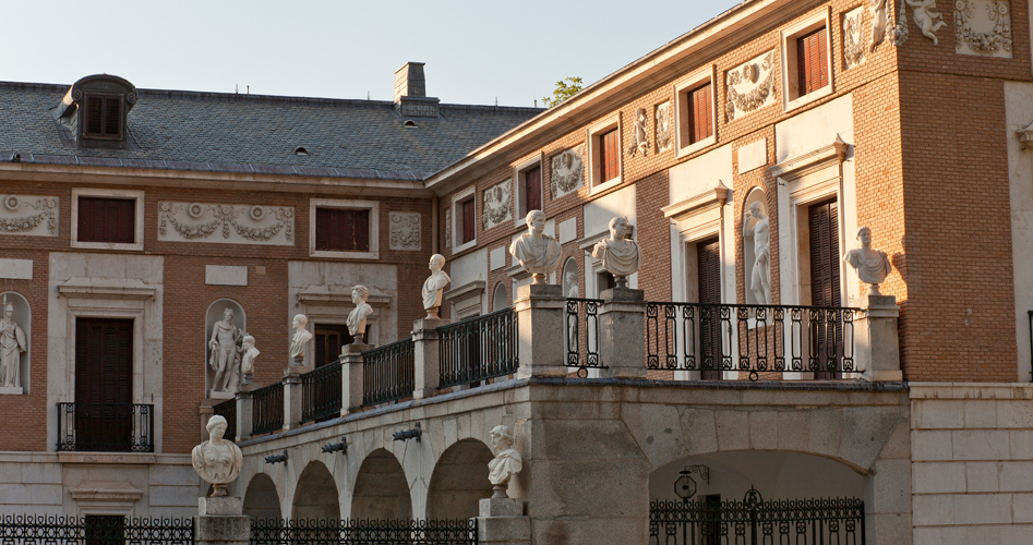 Más suntuoso resulta aún el interior del edificio, distribuido en diversas estancias de marcada influencia francesa. De todas ellas destaca la Galería de Estatuas, presidida por diez bustos de emperadores romanos hallados en las excavaciones de la Villa de los Pisones en Tívoli, a los que acompañan obras barrocas del siglo XVIII realizadas en mármol de Carrara. Sus suelos incorporan fragmentos de mosaicos romanos procedentes de Mérida. Otras espacios de interés son el Salón del Rey o Sala de Billar, la Sala de la Reina, el Salón Principal o de Baile, o el Gabinete de Platino, en los que podemos encontrar frescos de Salvador Maella y de González Velázquez, tapices, relojes, muebles, así como diferentes objetos decorativos en los que abundan materiales como el bronce, la seda, el platino, el mármol o las maderas nobles.