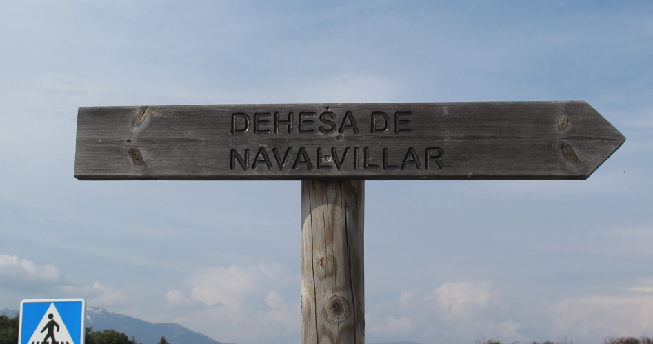 Navalvillar: carretera M-625 hasta el km 4, desvío por el camino de la Mueda hasta el cruce con el camino del Lomo del Escorial.