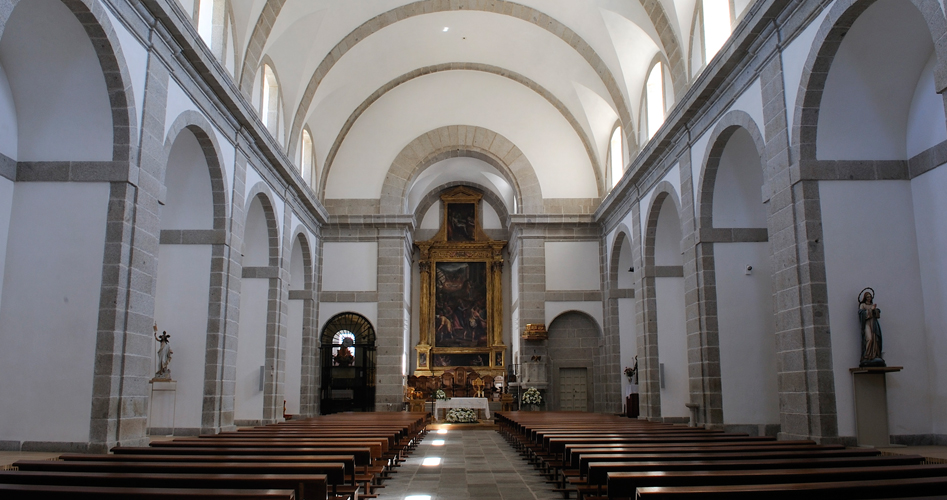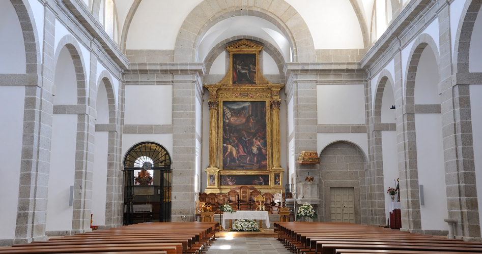 Es un edificio de planta rectangular con una sola nave de cinco tramos a la que se accede por un nártex situado entre dos potentes torres. Los contrafuertes al interior de la nave conforman diez capillas y son la base de los arcos fajones que sostienen la bóveda de cañón de la nave.